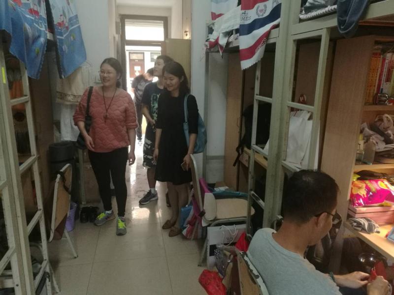 在走访现场,辅导员对宿舍环境进行了认真检查,找出宿舍可能存在的安全隐患。除了做好宿舍检查工作之外,辅导员们和在宿舍的同学就学习,生活等多方面进行了互动交流,了解同学们在学校、宿舍的学习、生活情况,就很多生活、学习上的问题分享了自己的经验和建议。临走前,辅导员嘱咐同学们在最近的流感多发季节要多注意宿舍卫生、个人卫生,预防感冒。