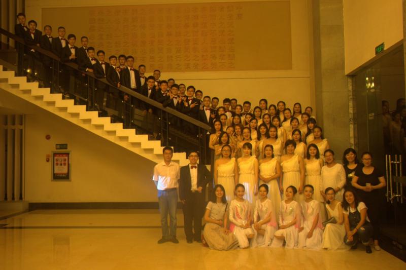 演出当晚,学院党委书记谢曼华、党委副书记陈征宇亲临现场,学院丘南海、侯雪莹、刘晓、茹春平、谢晓华、宴敏贞、张艳丽等老师也积极参与演出。学院领导和老师一如既往的支持研究生合唱比赛活动,让参赛学生们热情高涨。最终,我院师生的深情与激昂打动了每一位评委与观众,现场男女高低声部的完美配合,赢得了台下评委和观众的热烈掌声。