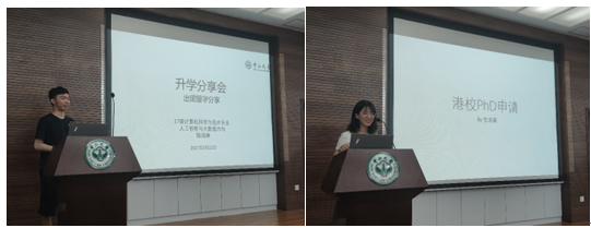 申请出国(境)留学经验分享专场由17级计算机科学与技术专业陈鸿征同学(获Cornell CS PhD offer)和17级软件工程专业仕润昊(直博香港科技大学)两位同学分享。