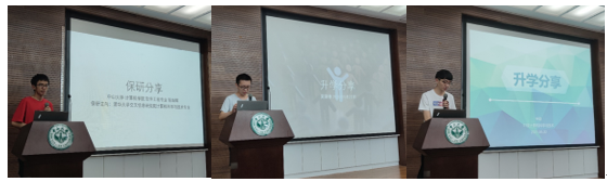 陈俊志结合自身实际从三个方面分析为什么要读研。他指出要重视笔试,复习过程中要构建属于自己的知识逻辑体系,总结考察要点。蓝煜航结合自身经历为同学们分析不同研究生专业之间的区别、如何结合专业兴趣选导师,并通过讲述自己考研的复习时间轴,鼓励同学们要合理规划每天复习的安排,并持之以恒,适当放松心态积极准备。王新宇同学则结合个人见解讲述考研的优势、如何选校、报考外校的注意事项等。