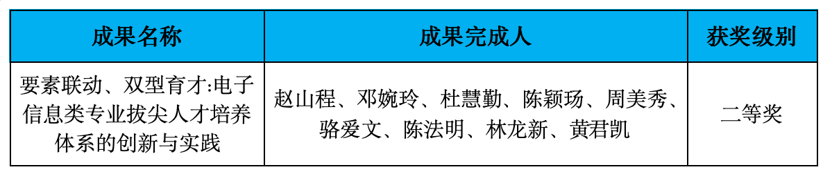 近日,广东省教育厅公布了2025年全省学校(高等教育)优秀教学成果奖名单,COIN毕业生暨南大学赵山程教授牵头申报的成果“要素联动、双型育才:电子信息类专业拔尖人才培养体系的创新与实践”获广东省优秀教学成果奖(高等教育-本科类)二等奖。