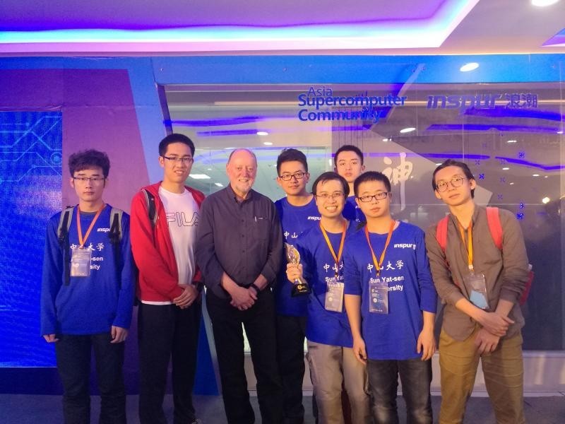 中山大学代表队与全球超算TOP500发起人、美国工程院院士Jack Dongarra合影